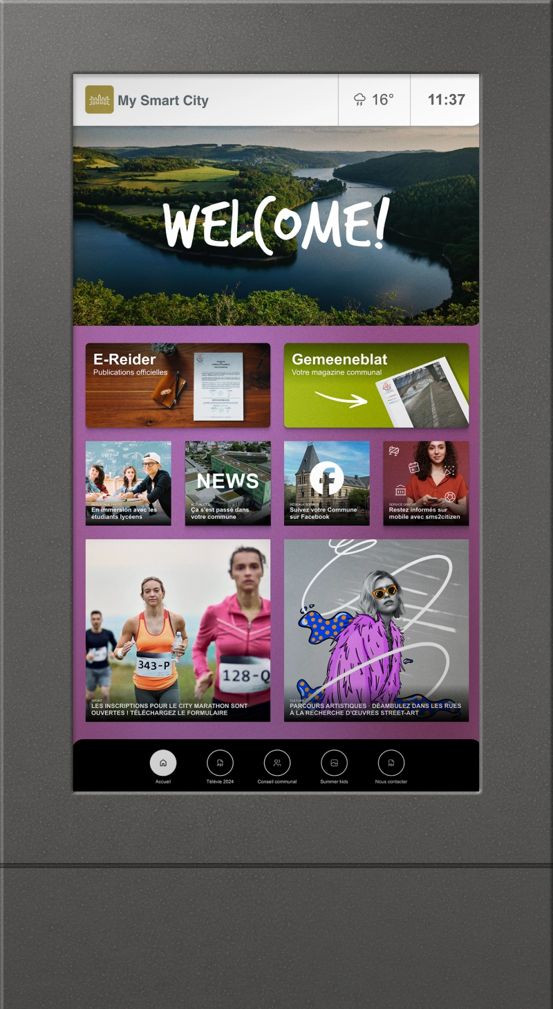 Customize with your identity, adapt functionalities to your needs and manage as many interactive totems as you want.