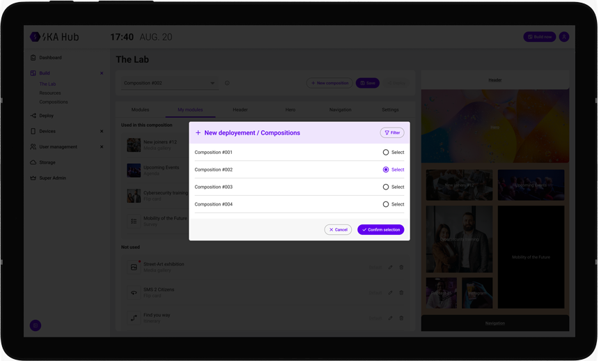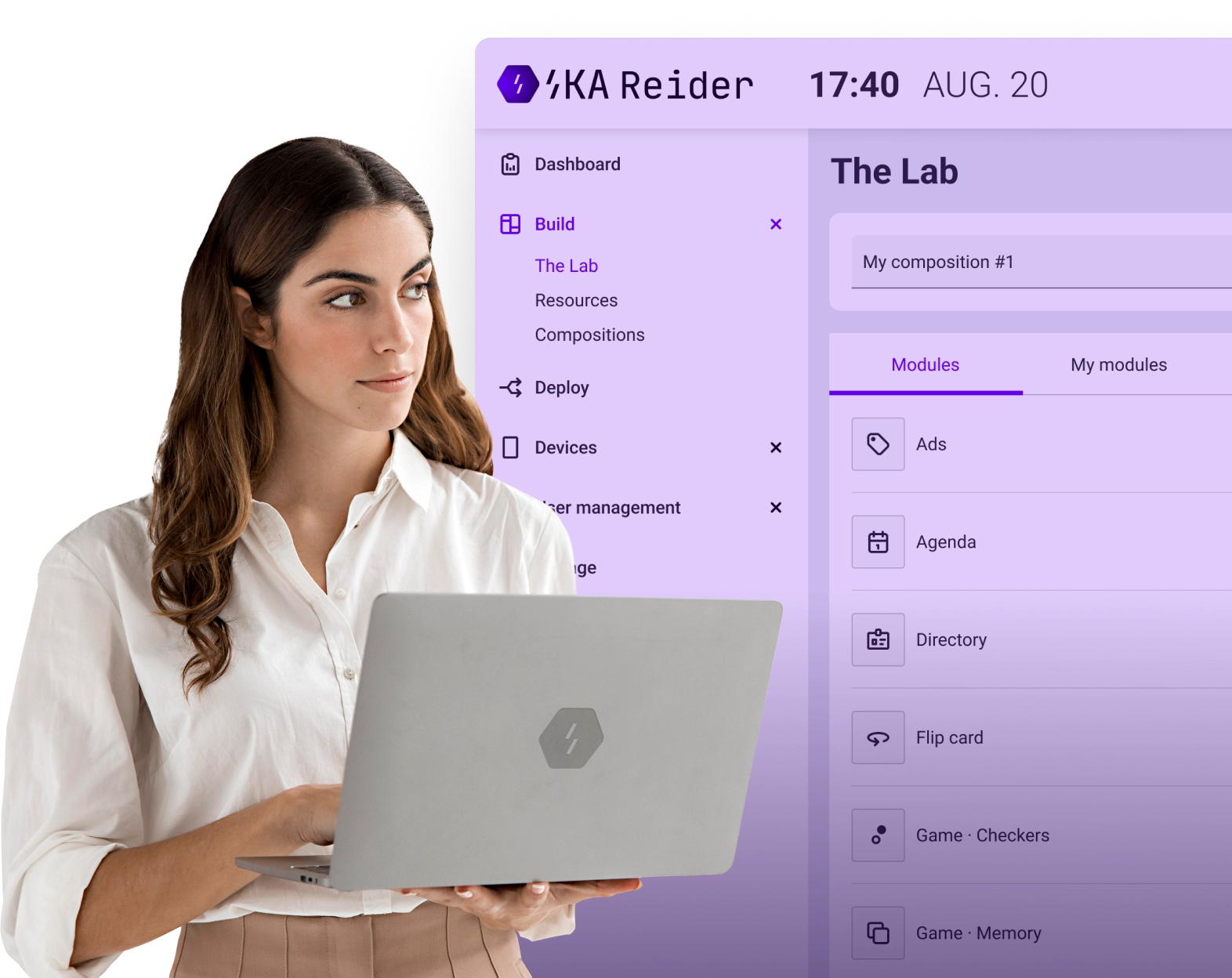 Skip the paper. Control your communications easily, remotely, quickly. Start with our pre-built modules, add your content, deploy and voilà!