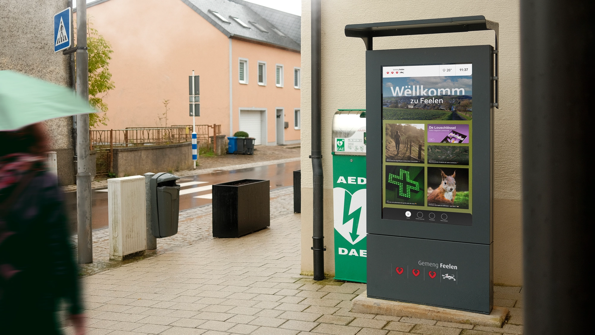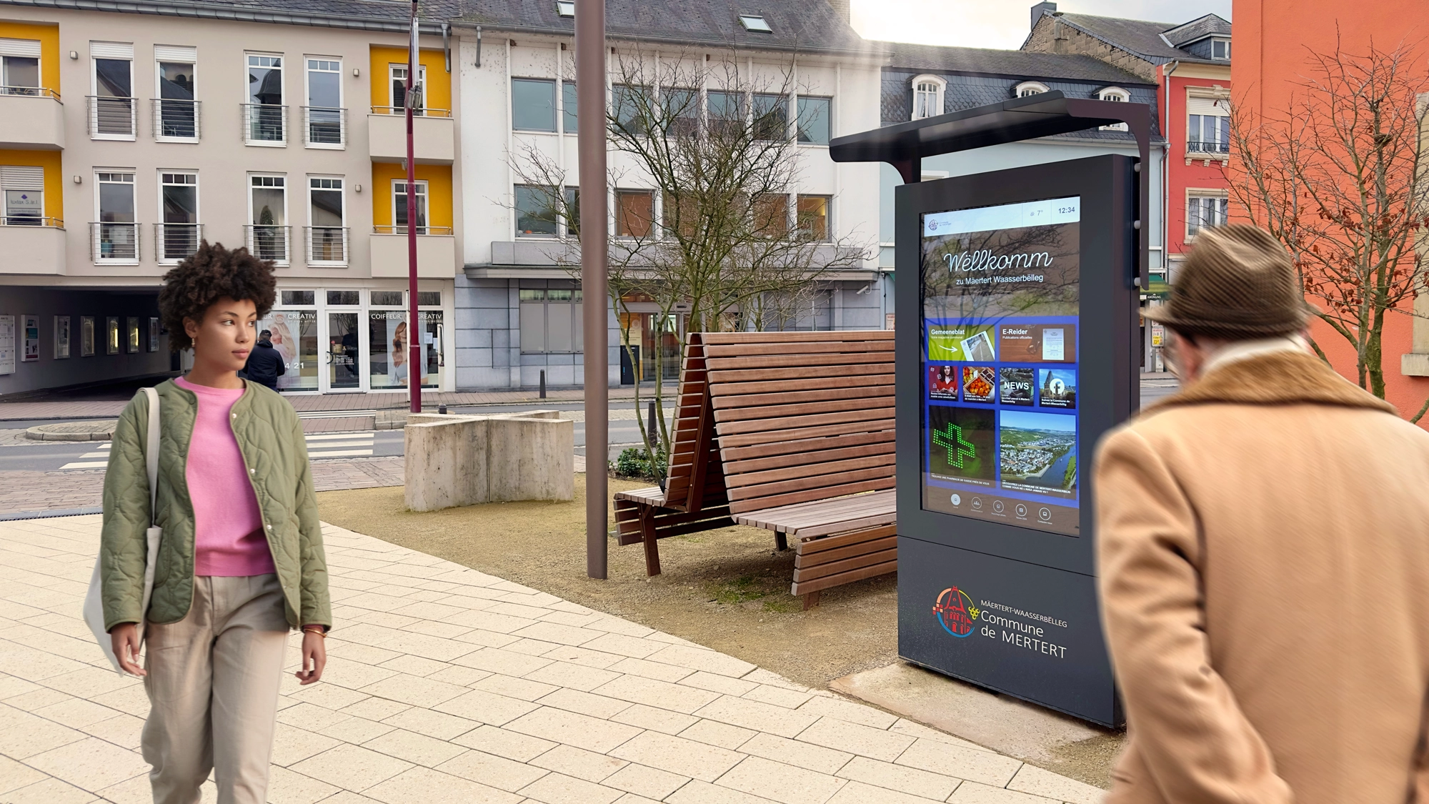 Premium outdoor interactive totem made in France and built to last. Finishing and customization available on request. On-site installation by CK Charles Kieffer Group.